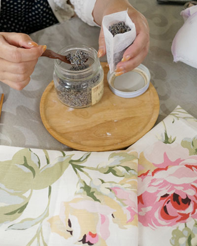 持ち歩きできるサイズのミニピロウの中にラベンダーを仕込みます。