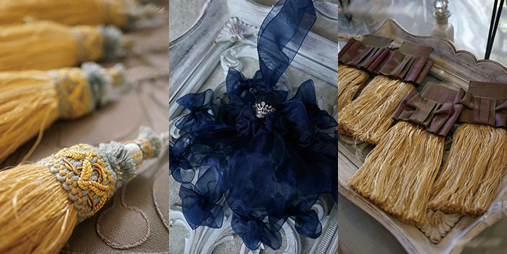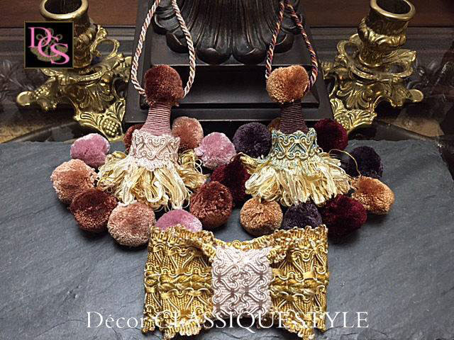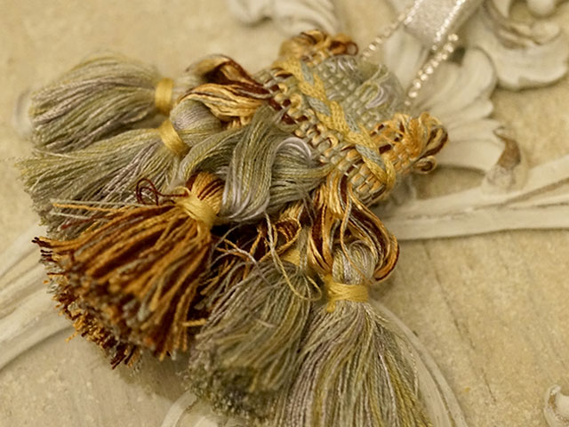 中型のタッセルが中心で作りごたえのあるゴージャスなタッセルを作ることができるレッスンです。こちらのタッセルのDecor CLASSIQUE独自の優雅なタッセルです。